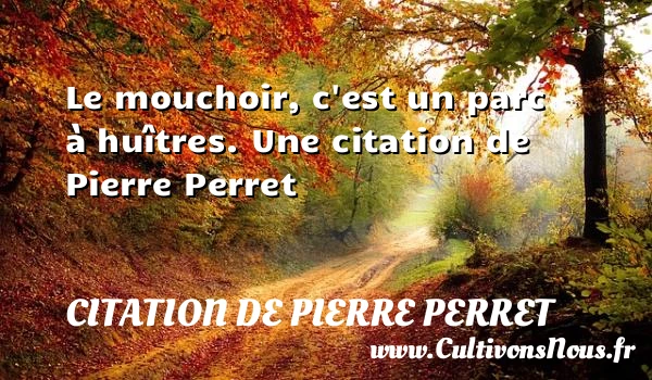 Evaluer cet article Le mouchoir, c’est un parc à huîtres. Une citation de Pierre Perret A lire Les ours se suivent et ne se ressemblent PARTAGER