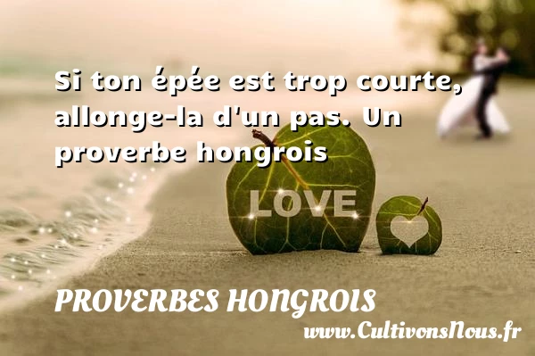 Evaluer cet article Si ton épée est trop courte, allonge-la d’un pas. Un proverbe hongrois A lire Si ton épée est trop courte, allonge-Là PARTAGER Tags: Proverbes philosophiques