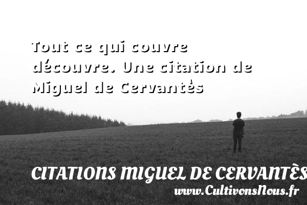 Evaluer cet article Tout ce qui couvre découvre. Une citation de Miguel de Cervantès A lire Les vengeances châtient, mais n'éliminent pas les fautes. PARTAGER