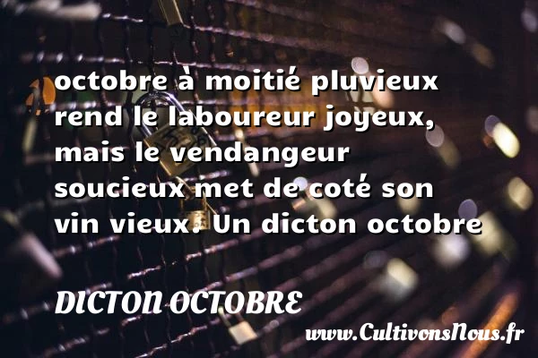 octobre à moitié pluvieux rend le laboureur joyeux, mais le vendangeur soucieux met de coté son vin vieux.