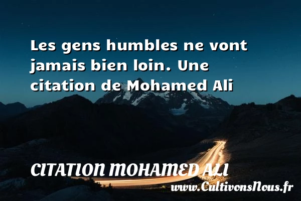 Evaluer cet article Les gens humbles ne vont jamais bien loin. Une citation de Mohamed Ali A lire N’abandonne pas PARTAGER Tags: Citation humble