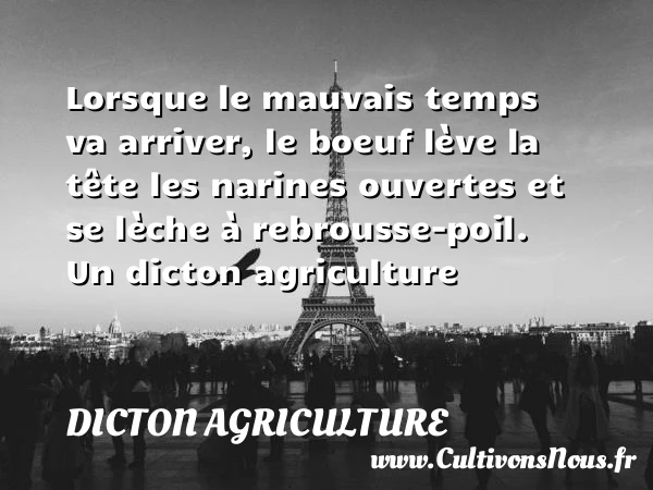 Lorsque le mauvais temps va arriver, le boeuf lève la tête les narines ouvertes et se lèche à rebrousse-poil.
