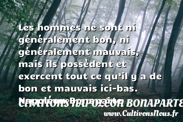 Les hommes ne sont ni généralement bon, ni généralement mauvais, mais ils possèdent et exercent tout ce qu’il y a de bon et mauvais ici-bas.