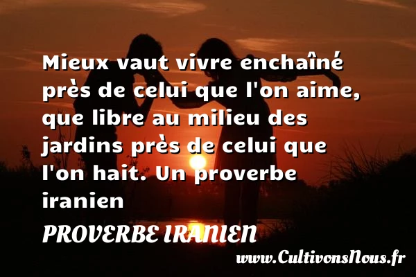 Mieux vaut vivre enchaîné près de celui que l’on aime, que libre au milieu des jardins près de celui que l’on hait.