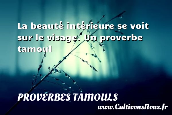 Evaluer cet article La beauté intérieure se voit sur le visage. Un proverbe tamoul A lire Pour sa mère, le corbeau est précieux comme de l'or PARTAGER Tags: Proverbe beauté