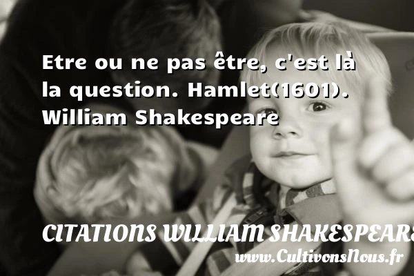 4.5/5 - (4 votes) Etre ou ne pas être, c’est là la question. Hamlet(1601). William Shakespeare A lire La musique est l'aliment de l'amour. PARTAGER
