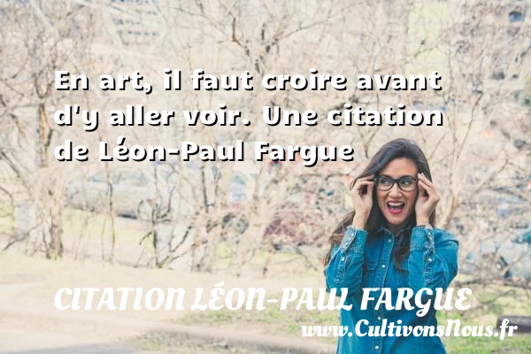 Evaluer cet article En art, il faut croire avant d’y aller voir. Une citation de Léon-Paul Fargue A lire La vie m'a tant giflé que la tête m'en tournait PARTAGER