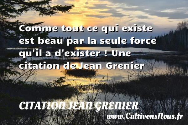 Evaluer cet article Comme tout ce qui existe est beau par la seule force qu’il a d’exister ! Une citation de Jean Grenier A lire L'homme, quoiqu'on en dise, est le maître de son destin. De PARTAGER