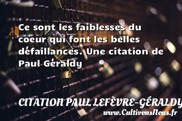 Evaluer cet article Ce sont les faiblesses du coeur qui font les belles défaillances. Une citation de Paul Géraldy A lire A quarante ans, l'homme ne sait plus que travailler. Travailler, c'est marcher PARTAGER