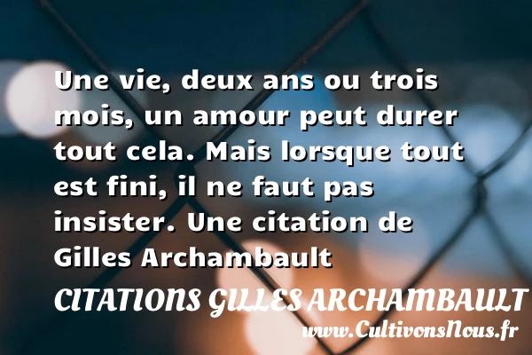 Une vie, deux ans ou trois mois, un amour peut durer tout cela. Mais lorsque tout est fini, il ne faut pas insister.