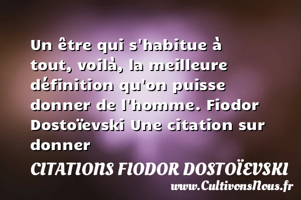 Un être qui s’habitue à tout, voilà, la meilleure définition qu’on puisse donner de l’homme.