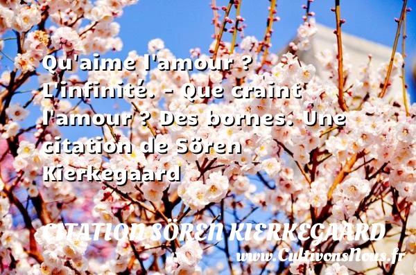 Evaluer cet article Qu’aime l’amour ? L’infinité. – Que craint l’amour ? Des bornes. Une citation de Sören Kierkegaard A lire Ce n'est pas le chemin qui est difficile, c'est PARTAGER