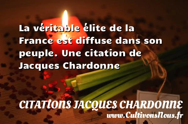 Evaluer cet article La véritable élite de la France est diffuse dans son peuple. Une citation de Jacques Chardonne A lire Je songe à ce style modeste et strict, PARTAGER