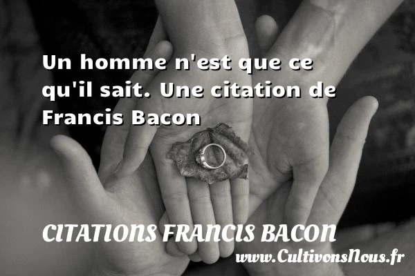 Evaluer cet article Un homme n’est que ce qu’il sait. Une citation de Francis Bacon A lire Pourquoi donc en voudrais-je à un homme d'avoir PARTAGER