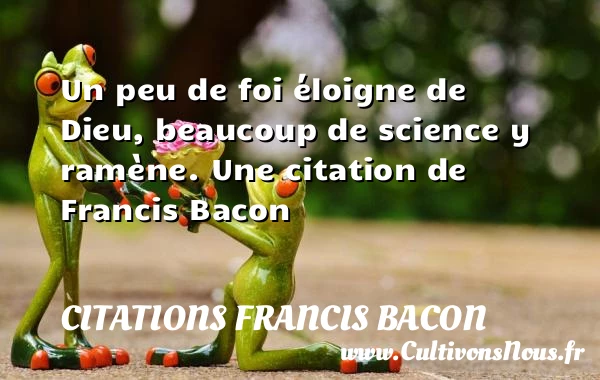 Evaluer cet article Un peu de foi éloigne de Dieu, beaucoup de science y ramène. Une citation de Francis Bacon A lire La prospérité découvre nos vices et l'adversité nos PARTAGER
