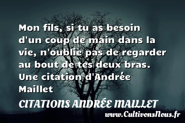 Mon fils, si tu as besoin d’un coup de main dans la vie, n’oublie pas de regarder au bout de tes deux bras.