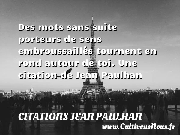Evaluer cet article Des mots sans suite porteurs de sens embroussaillés tournent en rond autour de toi. Une citation de Jean Paulhan A lire Nous nous piquons à nos opinions avec d'autant plus de violence que nous les PARTAGER Tags: Citation sens