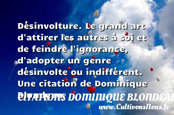 Désinvolture. Le grand art d’attirer les autres à soi et de feindre l’ignorance, d’adopter un genre désinvolte ou indifférent.