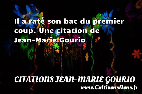 Evaluer cet article Il a raté son bac du premier coup. Une citation de Jean-Marie Gourio A lire Le vrai miracle de Lourdes, c'est trois cents francs le bouquin PARTAGER