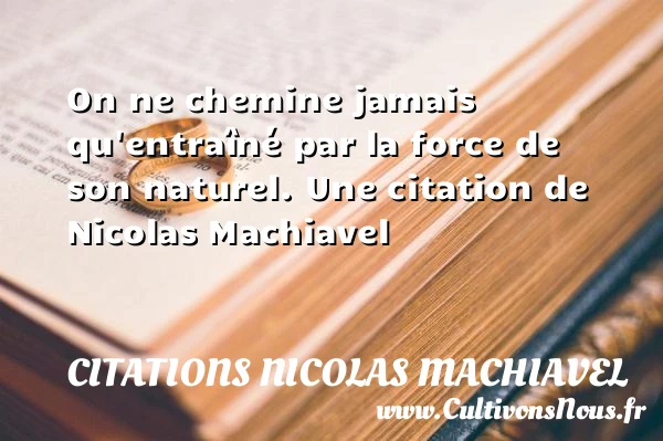 Evaluer cet article On ne chemine jamais qu’entraîné par la force de son naturel. Une citation de Nicolas Machiavel A lire La fortune ne change que pour ceux qui ne savent pas se PARTAGER