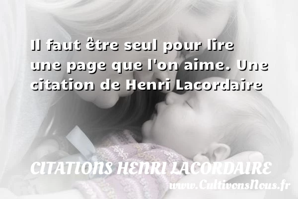 Evaluer cet article Il faut être seul pour lire une page que l’on aime. Une citation de Henri Lacordaire A lire Retournez, retournez à l'infini, lui seul est assez grand pour l'homme. Ni PARTAGER Tags: Citation lire