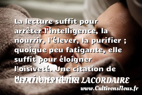 La lecture suffit pour arrêter l’intelligence, la nourrir, l’élever, la purifier ; quoique peu fatigante, elle suffit pour éloigner l’oisiveté.