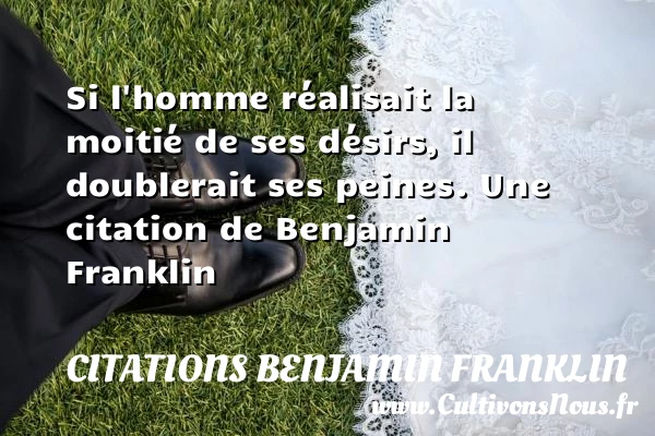 5/5 - (2 votes) Si l’homme réalisait la moitié de ses désirs, il doublerait ses peines. Une citation de Benjamin Franklin A lire La bière est la preuve que Dieu PARTAGER Tags: Citations désir