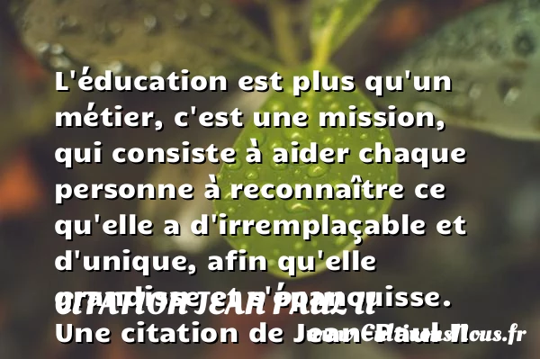 L’éducation est plus qu’un métier, c’est une mission, qui consiste à aider chaque personne à reconnaître ce qu’elle a d’irremplaçable et d’unique, afin qu’elle grandisse et s’épanouisse.
