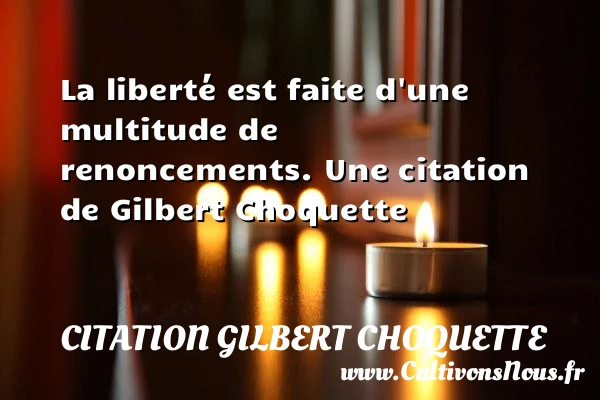 Evaluer cet article La liberté est faite d’une multitude de renoncements. Une citation de Gilbert Choquette A lire Peut-être y a-t-il deux sortes d'amour : celui qui attend et celui PARTAGER
