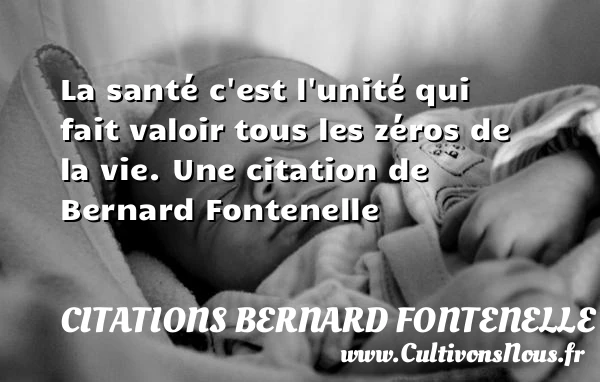 Evaluer cet article La santé c’est l’unité qui fait valoir tous les zéros de la vie. Une citation de Bernard Fontenelle A lire La poésie n'est autre chose que la santé PARTAGER Tags: Citation santé