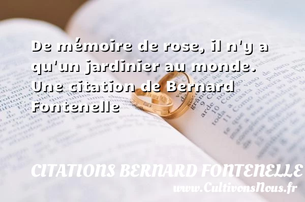 Evaluer cet article De mémoire de rose, il n’y a qu’un jardinier au monde. Une citation de Bernard Fontenelle A lire Un bon esprit cultivé est pour ainsi dire composé de tous les esprits PARTAGER