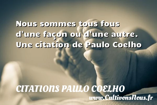 Evaluer cet article Nous sommes tous fous d’une façon ou d’une autre. Une citation de Paulo Coelho A lire Le meilleur soldat est celui qui ressemble à une pierre. Sans sortir la lame PARTAGER