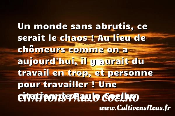 Un monde sans abrutis, ce serait le chaos ! Au lieu de chômeurs comme on a aujourd’hui, il y aurait du travail en trop, et personne pour travailler !