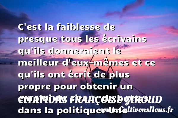 C’est la faiblesse de presque tous les écrivains qu’ils donneraient le meilleur