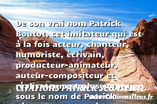 De son vrai nom Patrick Boutot, cet imitateur qui est à la fois acteur, chanteur, humoriste, écrivain, producteur-animateur, auteur-compositeur et réalisateur est plus connu sous le nom de Patrick Sébastien. Il est né le 14 novembre 1953 à Brive-la-Gaillarde.