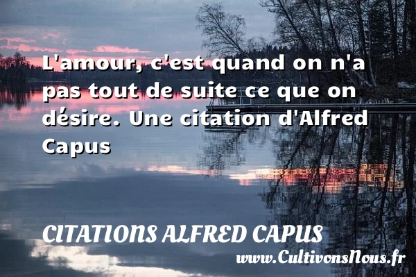 Evaluer cet article L’amour, c’est quand on n’a pas tout de suite ce que on désire. Une citation d’Alfred Capus A lire Aux yeux de beaucoup de gens, la pauvreté est bien pire que vice PARTAGER