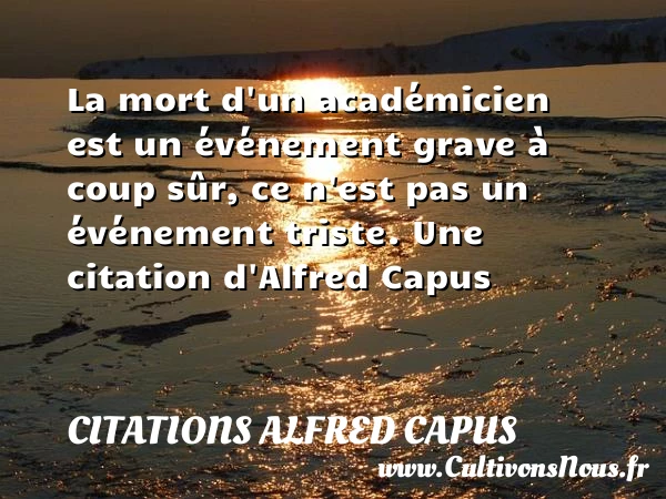 Evaluer cet article La mort d’un académicien est un événement grave à coup sûr, ce n’est pas un événement triste. Une citation d’Alfred Capus A lire Les femmes exigent que l'amour soit grave, mais PARTAGER