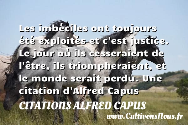 Les imbéciles ont toujours été exploités et c’est justice. Le jour où ils cesseraient de l’être, ils triompheraient, et le monde serait perdu.