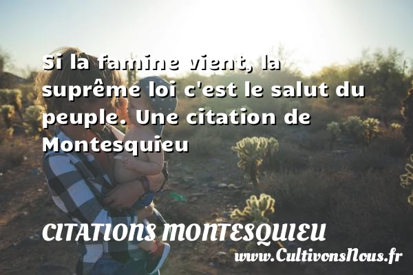 Evaluer cet article Si la famine vient, la suprême loi c’est le salut du peuple. Une citation de Montesquieu A lire Il faut bien connaître les préjugés de son siècle, afin de ne PARTAGER