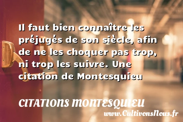 Il faut bien connaître les préjugés de son siècle, afin de ne les choquer pas trop, ni trop les suivre.
