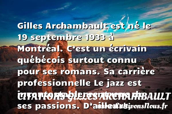 Aujourd’hui, Gilles Archambault continue sa brillante carrière de romancier et compte près de quarante romans. Son talent lui a valu l’obtention de différents prix à savoir :