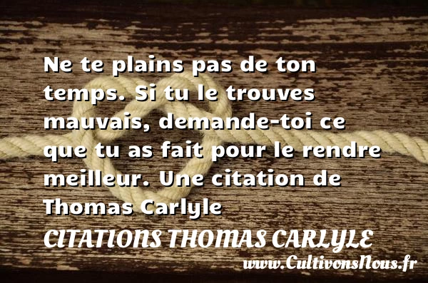 Ne te plains pas de ton temps. Si tu le trouves mauvais, demande-toi ce que tu as fait pour le rendre meilleur.