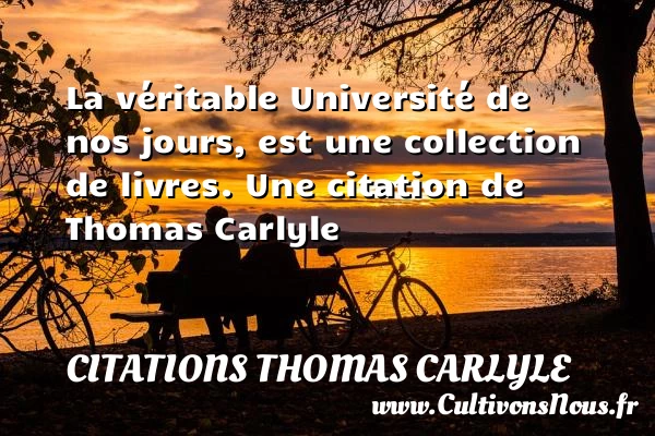 Evaluer cet article La véritable Université de nos jours, est une collection de livres. Une citation de Thomas Carlyle A lire L'homme est un bipède omnivore qui porte des PARTAGER