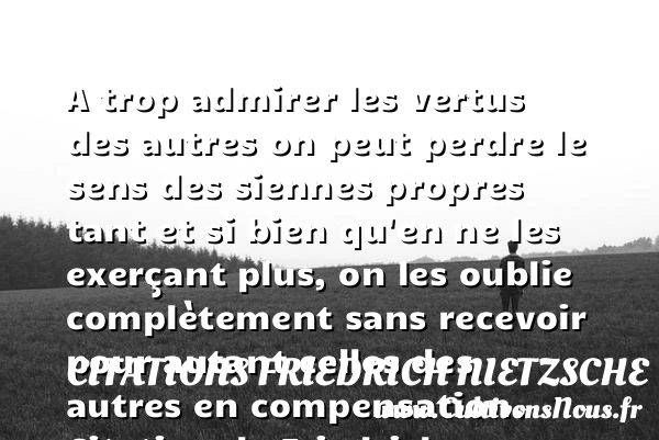 A trop admirer les vertus des autres on peut perdre le sens des siennes propres tant et si bien qu’en ne les exerçant plus, on les oublie complètement sans recevoir pour autant celles des autres en compensation.