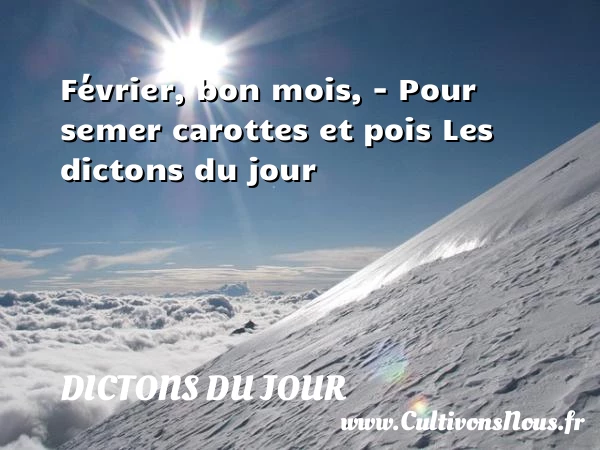 4.8/5 - (5 votes) Février, bon mois, – Pour semer carottes et pois Les dictons du jour A lire Beau temps à la PARTAGER