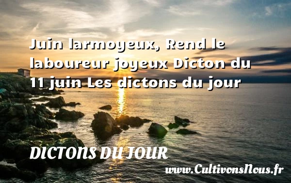 4.7/5 - (8 votes) Juin larmoyeux, Rend le laboureur joyeux Dicton du 11 juin Les dictons du jour A lire Pluie de Saint-Aurélien, - PARTAGER