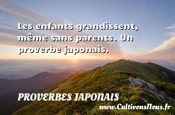 4.7/5 - (4 votes) Les enfants grandissent, même sans parents. Un proverbe japonais. A lire A père avare, enfant PARTAGER Tags: proverbe enfant