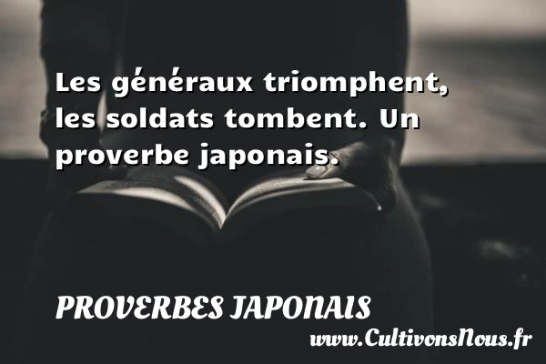 4.5/5 - (6 votes) Les généraux triomphent, les soldats tombent. Un proverbe japonais. A lire Dire adieu au monde PARTAGER Tags: Citation guerre