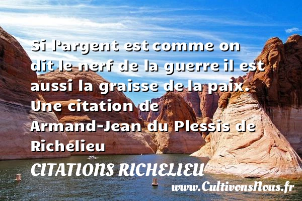 5/5 - (8 votes) Si l’argent est comme on dit le nerf de la guerre il est aussi la graisse de la paix. Une citation de Armand-Jean du Plessis de Richelieu A lire Faire une loi et ne pas la PARTAGER