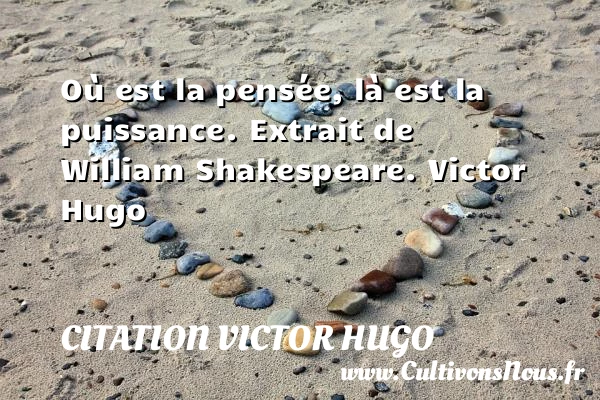 4.5/5 - (8 votes) Où est la pensée, là est la puissance. Extrait de William Shakespeare. Victor Hugo A lire Le mal est un mulet PARTAGER Tags: Citation penser